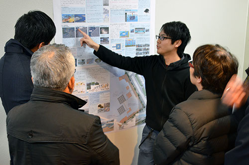 最終成果発表として、6つのグループがポスターセッションによる発表を行いました。当日は、行政・民間や地域の方々など、様々な立場で地域づくりや環境保全に取り組んでいらっしゃる14名のゲストの方々より、ご講評をいただきました。お忙しい中、ご参加いただいた皆様に、心より感謝申し上げます。