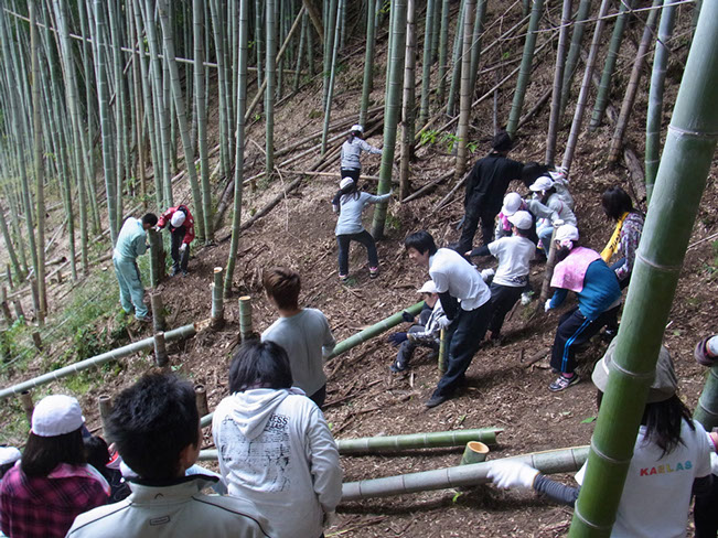 Recently, it has been reported that bamboo forests have been invading SATOCHI-SATOYAMA especially in western Japan. It is thought that the biggest cause is the abandonment of bamboo forests due to the changes in industrial systems. Namely, the relationship between local people and SATOCHI-SATOYAMA has been becoming weak year on year.