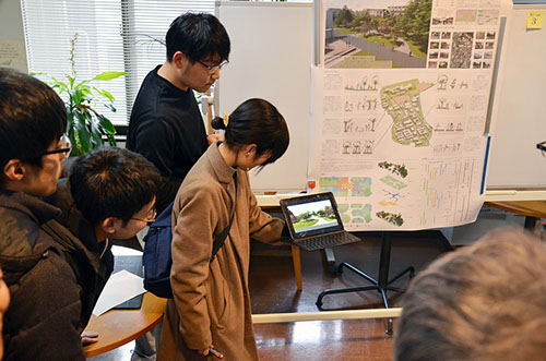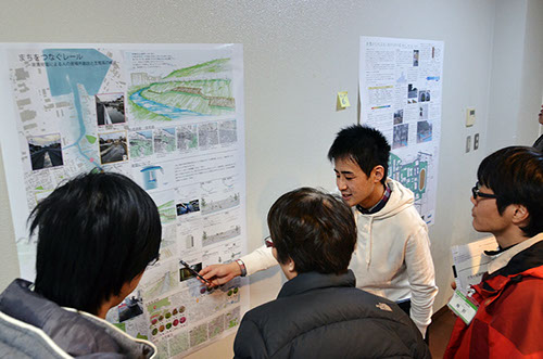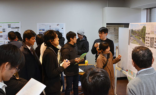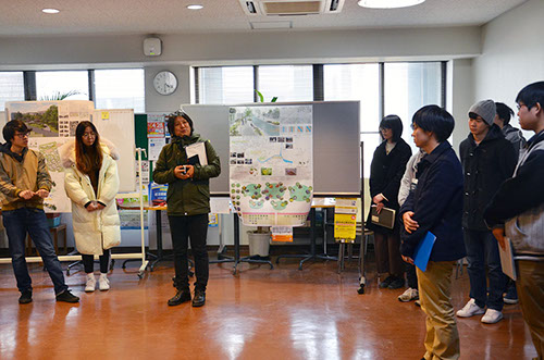 最終成果発表として、6つのグループがポスターセッションによる発表を行いました。当日は、行政・民間や地域の方々など、様々な立場で地域づくりや環境保全に取り組んでいらっしゃる14名のゲストの方々より、ご講評をいただきました。お忙しい中、ご参加いただいた皆様に、心より感謝申し上げます。